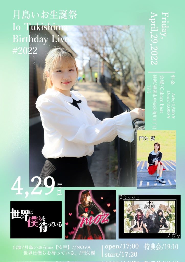 月島 いお 生誕祭 Io Tsukushima Birthday Live #2022 出演 / 月島いお / moz【安里】/ NOVA / 世界は僕らを待っている / 門矢翼