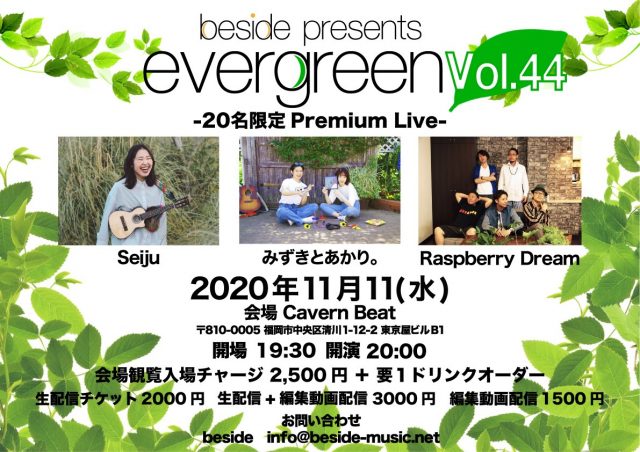 ※生配信チケットの販売はイベント前日の11月10日23時59分迄、銀行振込の方は前日振込確認分迄。またご入金確認ができなかった場合は、オンラインライブ会場のご案内が出来かねますことご了承ください。※チケットのご入金確認ができましたら、メールにて配信サイトのURLとパスワードをお送りしますので「info@cavern-beat.com」からのメールは必ず受信できるように設定をお願い致します。※生配信ご視聴の方は、当日時間になりましたらサイトにログインして頂きライブをお楽しみください。※コメントも頂きますと嬉しいです。