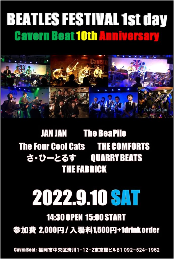 やはりキャバーンビートと言えばビートルズ9月10日11日2日間10周年のお祝いとしてビートルズ祭りを開催いたします。
