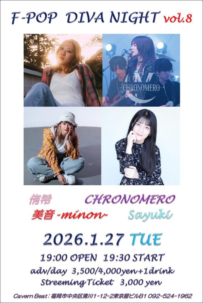 ※チケットのご入金確認ができましたら、メールにて配信サイトのURLとパスワードをお送りしますので「info@cavern-beat.com」からのメールは必ず受信できるように設定をお願い致します。