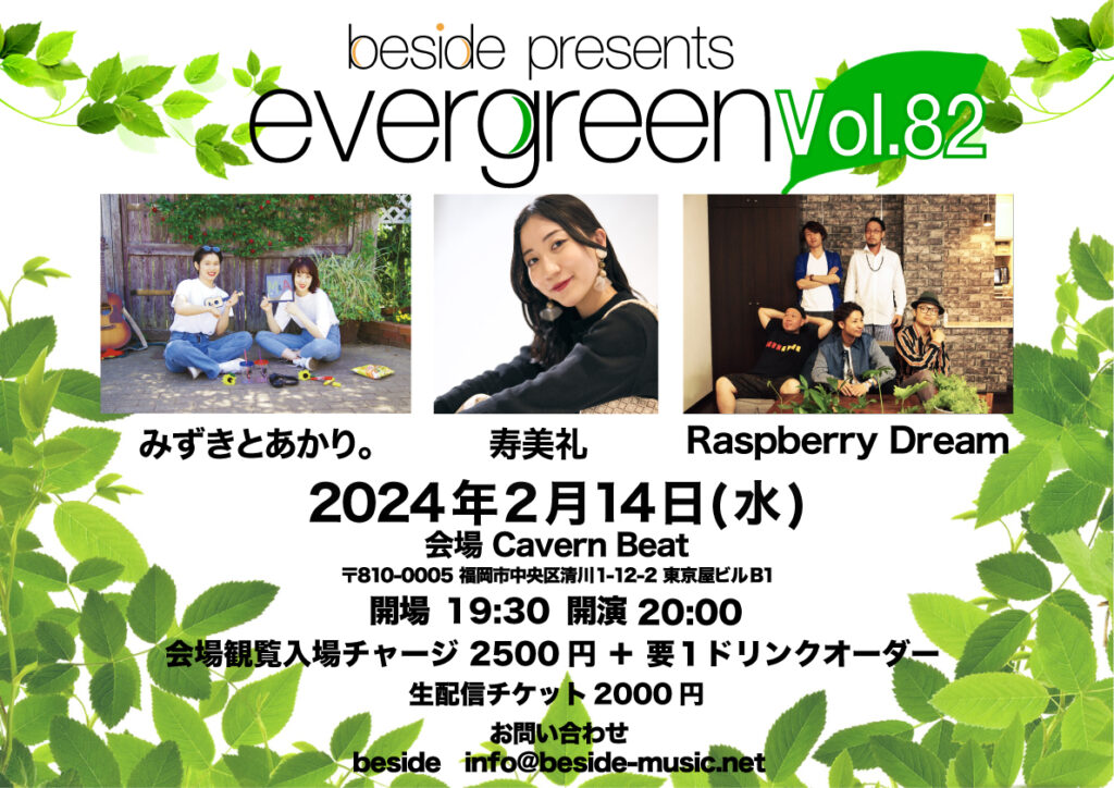 【ライブ生配信】evergreen vol.82 出演 寿美礼 , みずきとあかり。 , Raspberry Dream