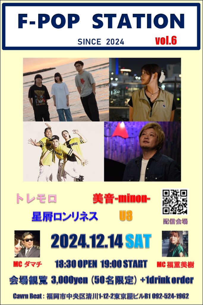 キャバーンビートYouTubeチャンネル登録5000名達成を記念しての第6回目もダマチお奨めの4組を集めて開催いたします。ぜひ一緒に福岡の音楽を盛り上げていきましょう!