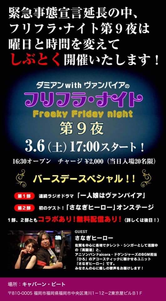 今回は緊急事態宣言による時短中につきキャバーンビートのYouTubeチャンネルより無料生配信いたします!