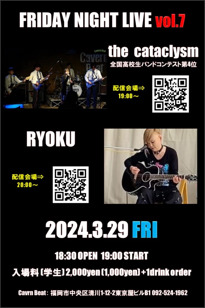※ライブの模様はキャバーンビートYouTubeチャンネルから生配信いたします。