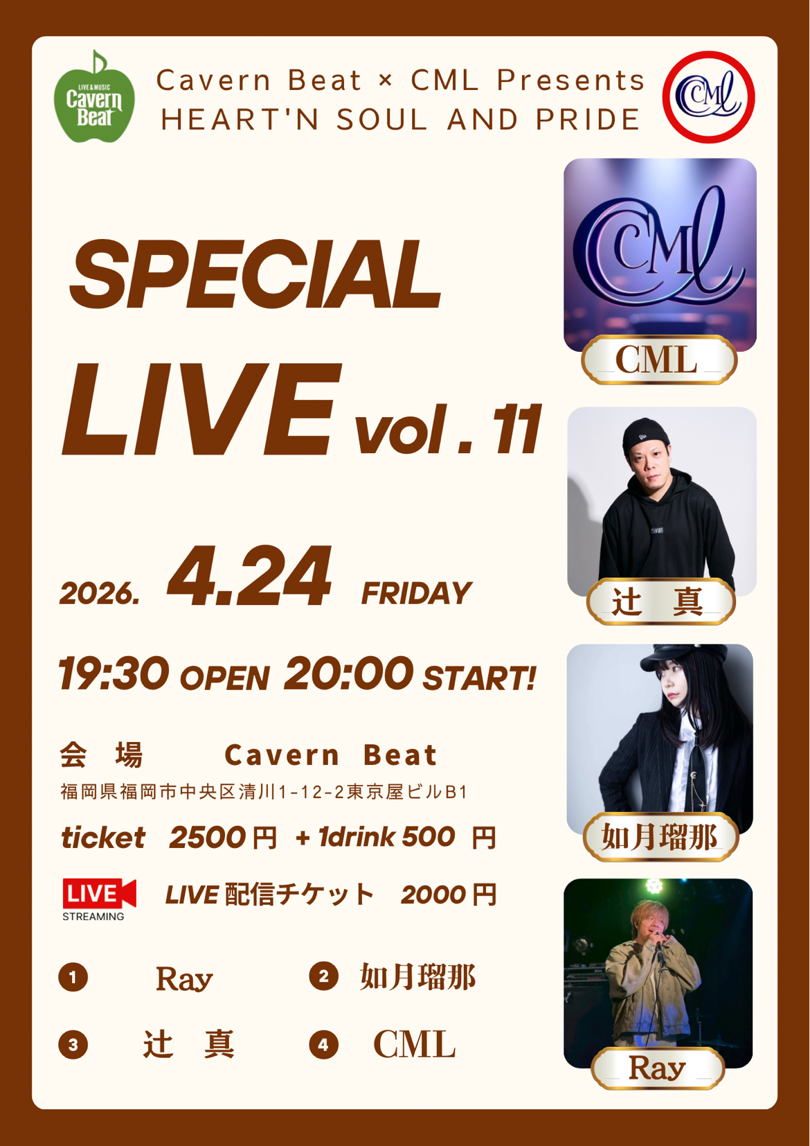 ※チケットのご入金確認ができましたら、メールにて配信サイトのURLとパスワードをお送りしますので「info@cavern-beat.com」からのメールは必ず受信できるように設定をお願い致します。