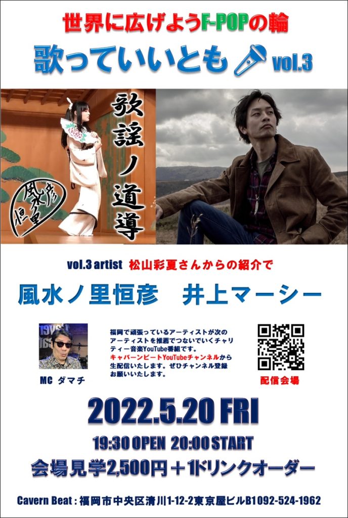 第2回目のゲストは松山彩夏さんからの推薦で風水ノ里恒彦さんと井上マーシーさんに歌っていただきますぜひお楽しみください。