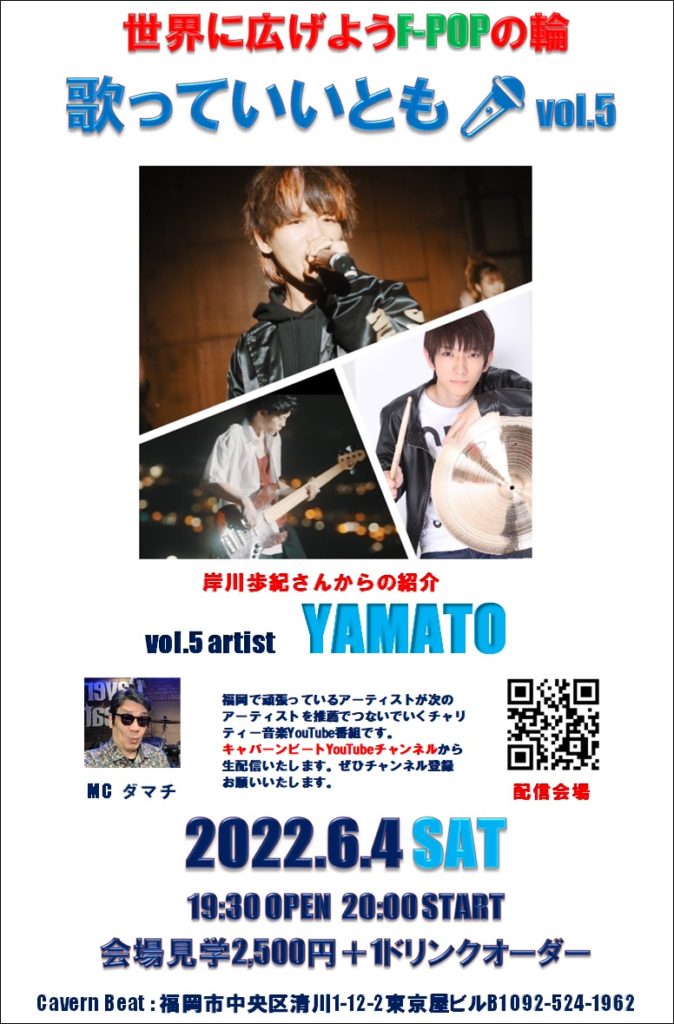 第5回目のゲストは岸川歩紀さんからの推薦でJINGIさんが参加しているバンドYAMATOに歌っていただきますぜひお楽しみください。