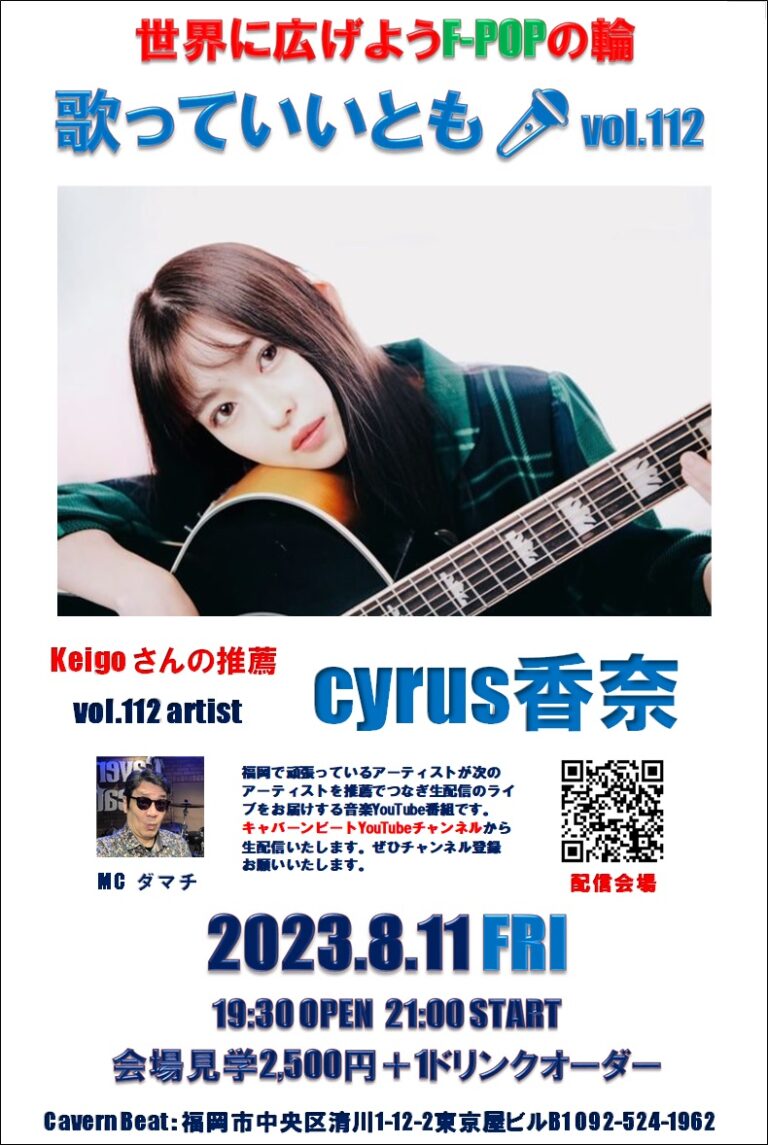 第112回目は歌っていいとも🎤第108回に出演いただいた Keigoさんの推薦でcyrus香奈さんのステージをお届けいたしますのでぜひお楽しみください。