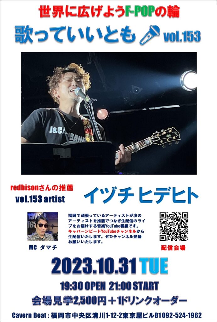 第153回目は歌っていいとも🎤第143回に出演いただいた redbisonさんからの推薦でイヅチヒデヒトさんのライブをお楽しみください。