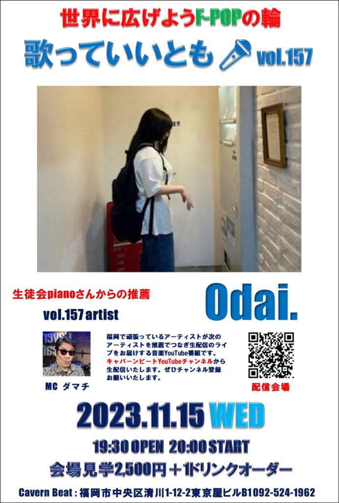 第157回目は歌っていいとも🎤第154回に出演いただいた生徒会pianoさんからの推薦でOdai.さんのライブをお楽しみください。