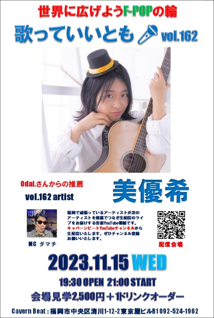 第162回目は歌っていいとも🎤第157回に出演いただいたOdai.さんからの推薦で美優希さんのライブをお楽しみください。