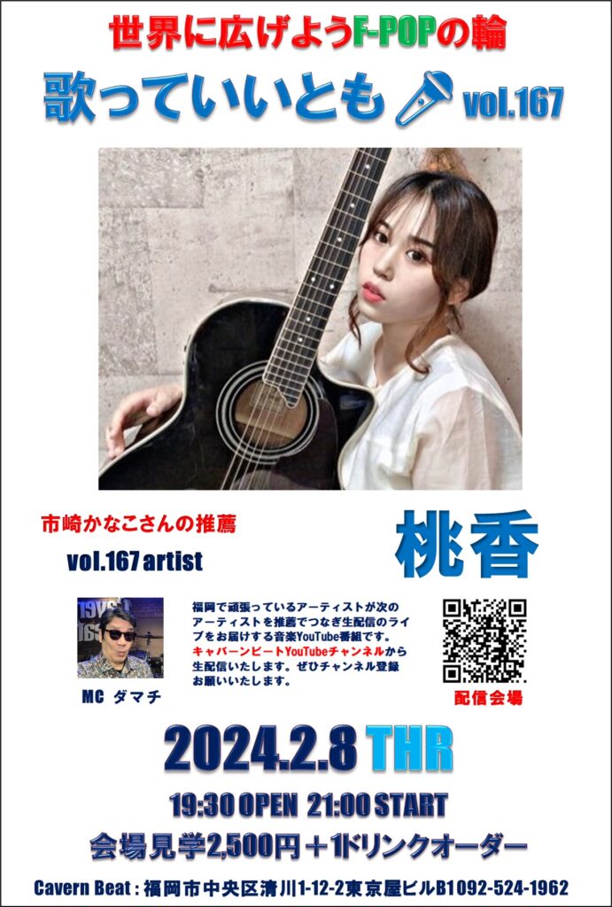 第167回目は歌っていいとも🎤第166回に出演いただいた市崎かなこさんの推薦で桃香さんのステージをお届けいたしますのでぜひお楽しみください。