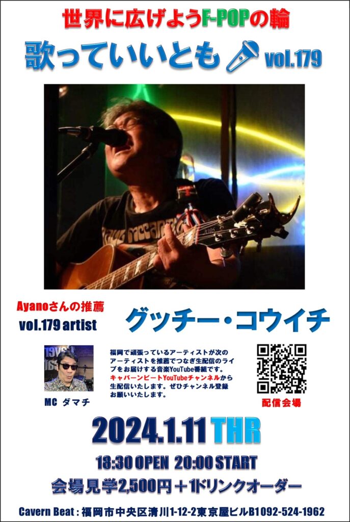 第179回目は歌っていいとも🎤第174回に出演いただいた Ayanoさんの推薦でグッチーコウイチさんのステージをお届けいたしますのでぜひお楽しみください。