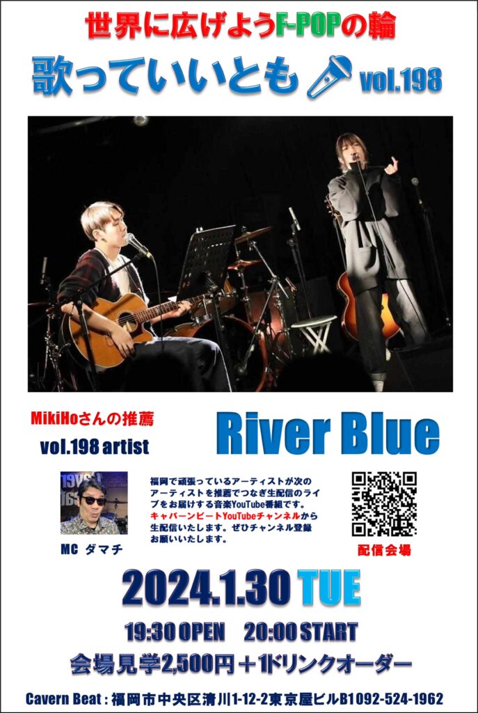 第198回目は歌っていいとも🎤第192回に出演いただいたMikiHoさんの推薦でRiver Blueのステージをお届けいたしますのでぜひお楽しみください。
