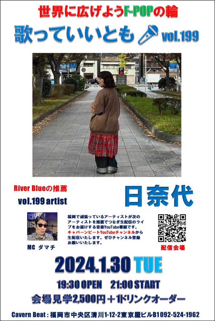 第199回目は歌っていいとも🎤第198回に出演いただいたRiver Blueの推薦で日奈代さんのステージをお届けいたしますのでぜひお楽しみください。