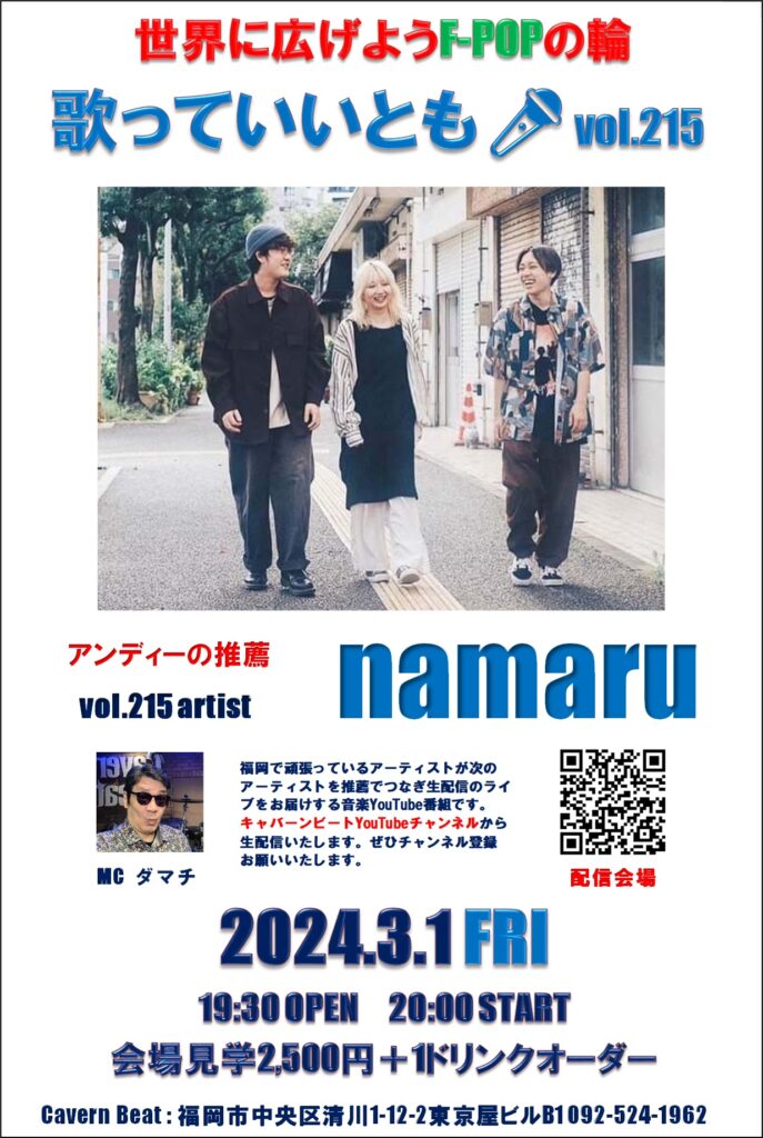 第215回目は歌っていいとも🎤第112回に出演いただいた アンディーからの推薦でnamaruのステージをお届けいたしますのでぜひお楽しみください。