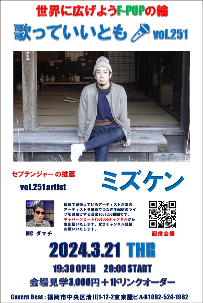 第251回目は歌っていいとも🎤第200回に出演いただいたセブテンジャーの推薦で水研さんのステージをお届けいたしますのでぜひお楽しみください。