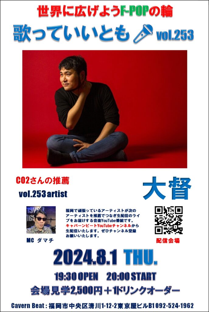 第253回目は歌っていいとも🎤第248回に出演いただいたCO2のさん推薦で大督さんのステージをお届けいたしますのでぜひお楽しみください。