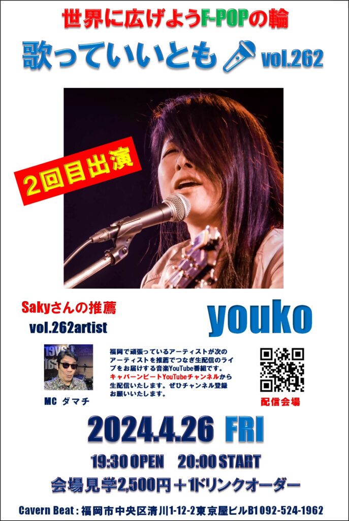 第263回目は歌っていいとも🎤第242回に出演いただいたSakyさんの推薦でyoukoさんのステージをお届けいたしますのでぜひお楽しみください。