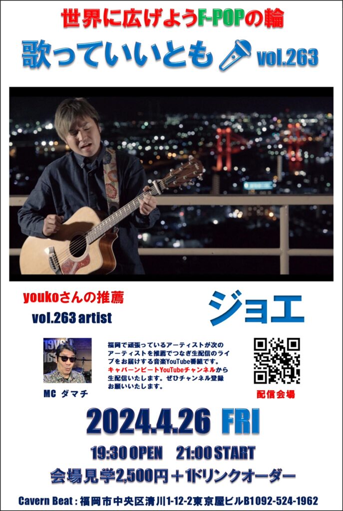 第263回目は歌っていいとも🎤第262回に出演いただいたyoukoさんの推薦でジョエさんのステージをお届けいたしますのでぜひお楽しみください。