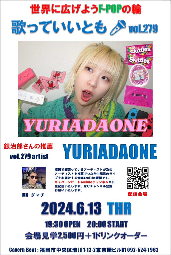 第279回目は歌っていいとも🎤第277回に出演いただいた銀治郎さんの推薦でYURIADAONEさんのステージをお届けいたしますのでぜひお楽しみください。