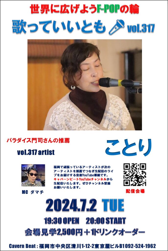 第317回目は歌っていいとも🎤第310回に出演いただいたパラダイス門司さんの推薦でことりさんのステージをお届けいたしますのでぜひお楽しみください。