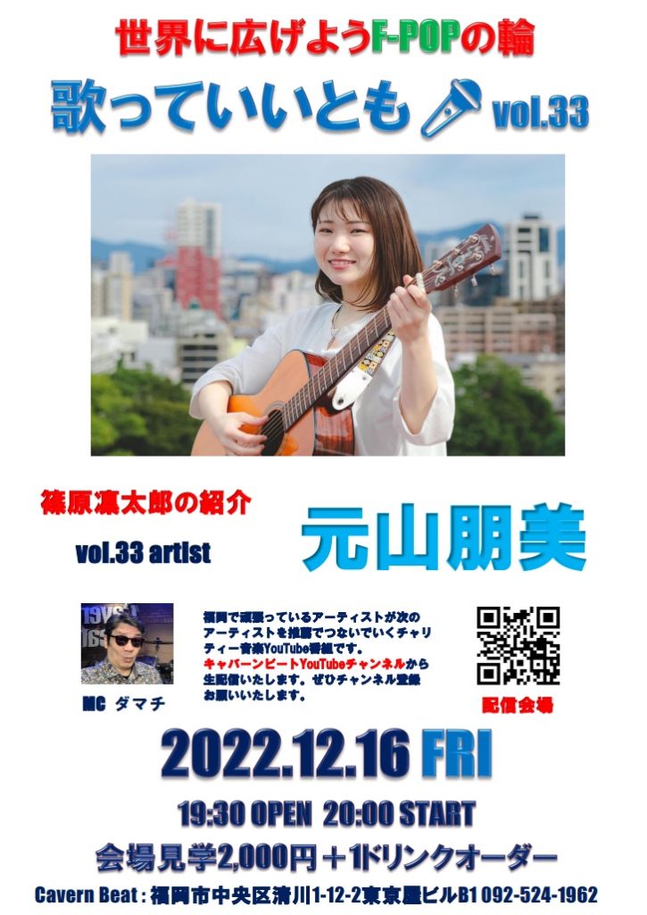 第33回目は第32回のゲスト 篠原凜太郎さんからの紹介で元山朋美さんのステージをお届けいたしますのでぜひお楽しみください。