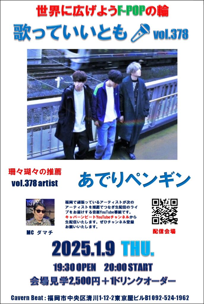 第378回目は歌っていいとも🎤第368回に出演いただいた珊々瑚々からの推薦であでりペンギン のステージをお届けいたしますのでぜひお楽しみください。