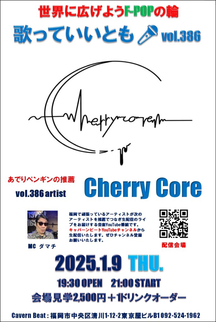 第386回目は歌っていいとも🎤第378回に出演いただいたあでりペンギンからの推薦で Cherry Core のステージをお届けいたしますのでぜひお楽しみください。