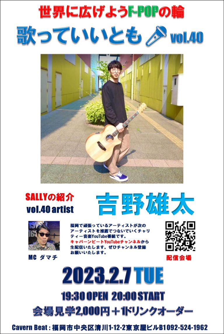 第40回目は第39回のゲスト SALLYさん からの紹介で 吉野雄太さんのステージをお届けいたしますのでぜひお楽しみください。