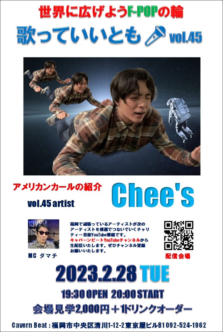 第45回目は第43回のゲスト アメリカンカールからの紹介でChee’sさんのステージをお届けいたしますのでぜひお楽しみください。