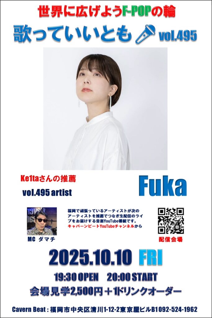 第495回目は歌っていいとも第485回に出演いただいたKe1taさんからの推薦でFukaさんのステージをお届けいたしますのでぜひお楽しみください。