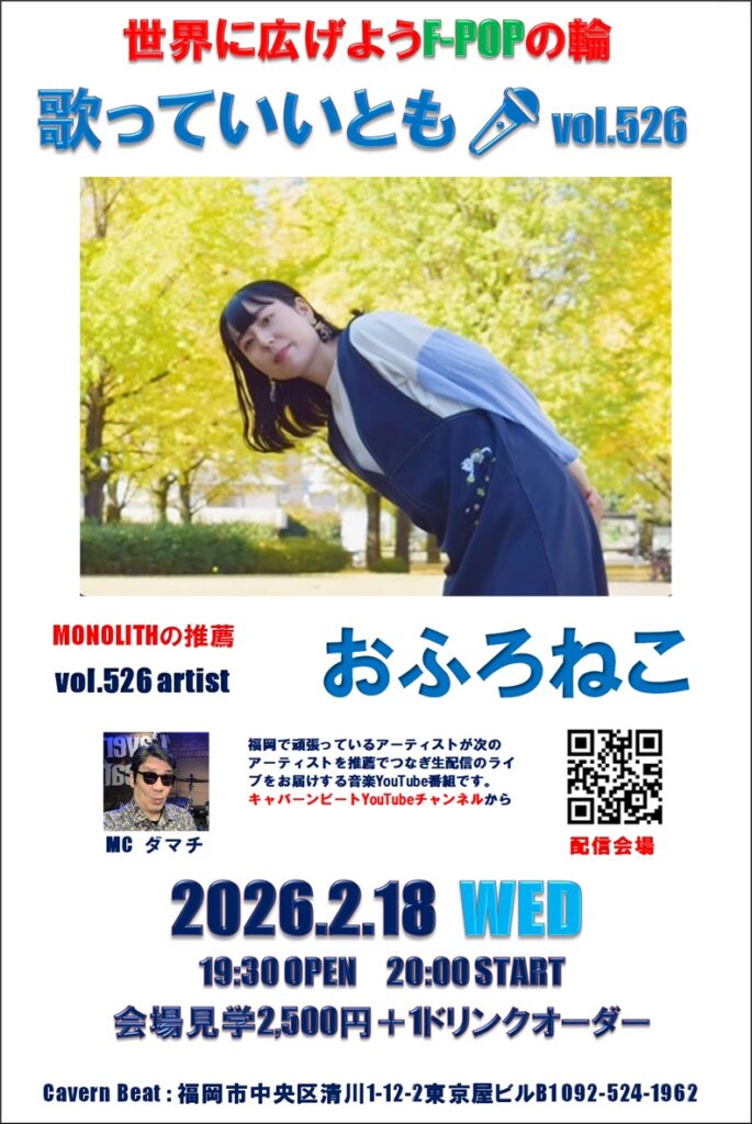 第526回目は歌っていいとも第523回に出演いただいた MONOLITHからの推薦でおふろねこさんのステージをお届けいたしますのでぜひお楽しみください。