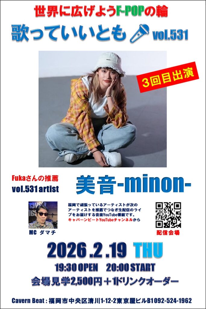 第531回目は歌っていいとも🎤第527回に出演いただいた Fukaさんからの推薦で   美音-minon-さん歌っていいとも🎤3回目のステージをお届けいたしますのでぜひお楽しみください。