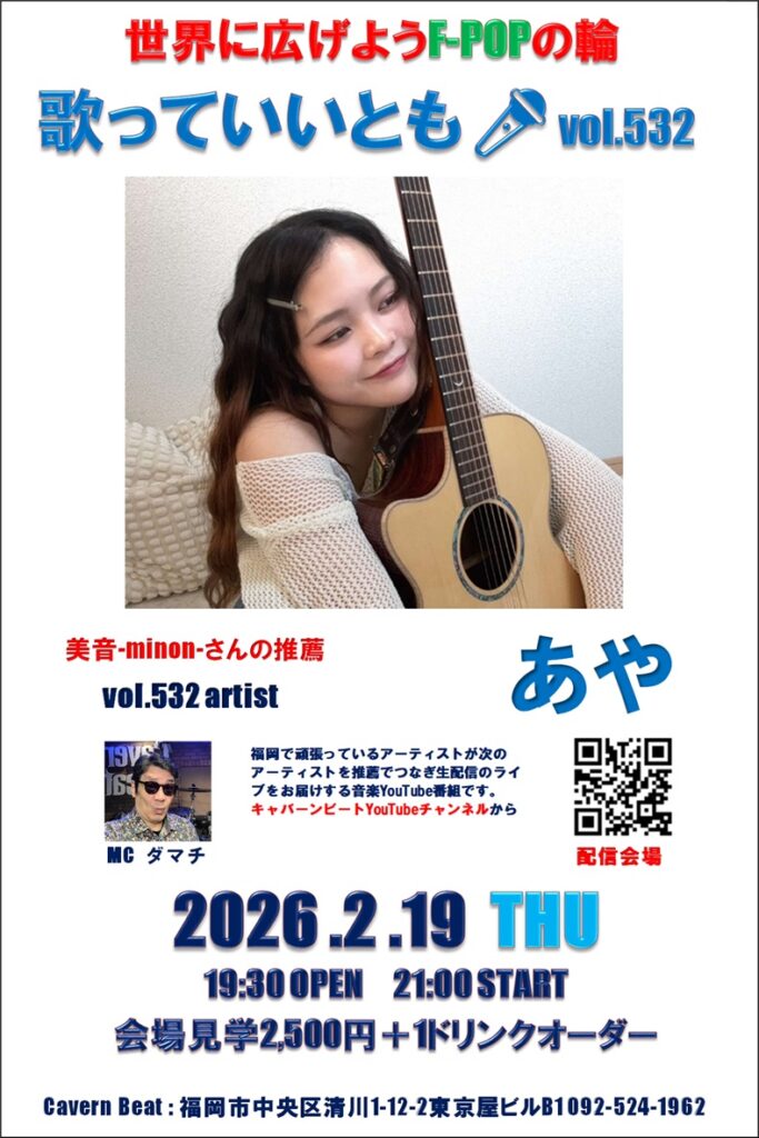 第532回目は歌っていいとも🎤第531回に出演いただいた 美音-minon- さんからの推薦で   さん歌っていいとも🎤3回目のステージをお届けいたしますのでぜひお楽しみください。