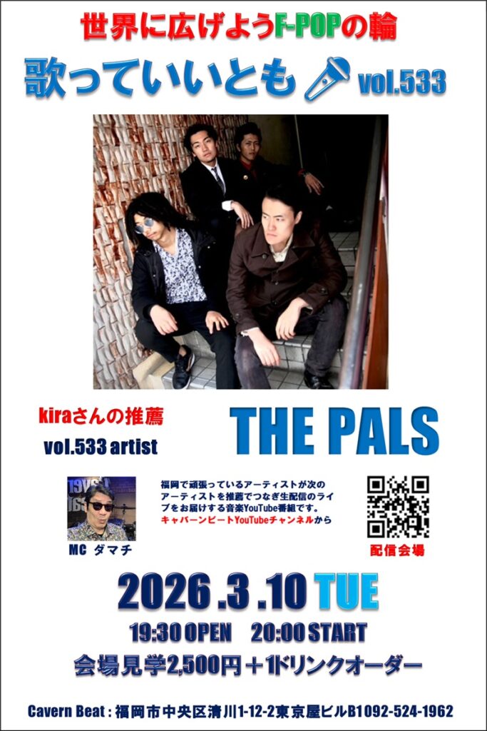 第533回目は歌っていいとも第524回に出演いただいた kiraさんからの推薦でTHE PALSのステージをお届けいたしますのでぜひお楽しみください。