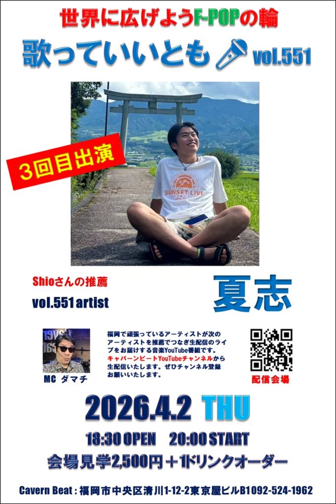 キャバーンビートYouiTube番組から福岡で頑張っているアーティストのライブを生配信する音楽番組です。