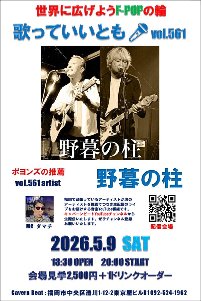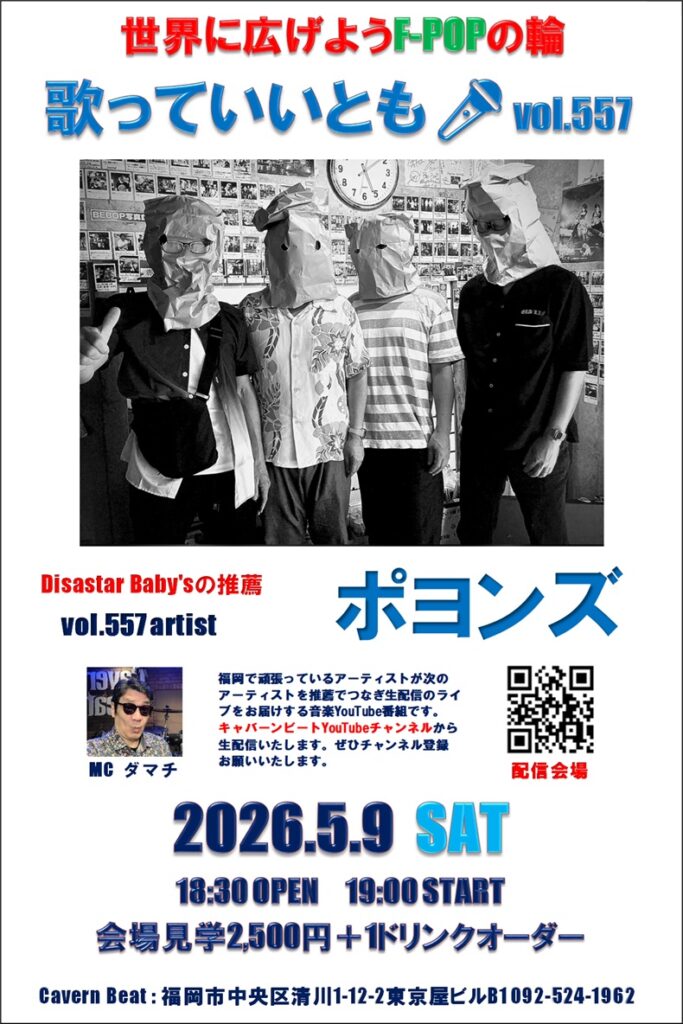 キャバーンビートYouiTube番組から福岡で頑張っているアーティストのライブを生配信する音楽番組です。
