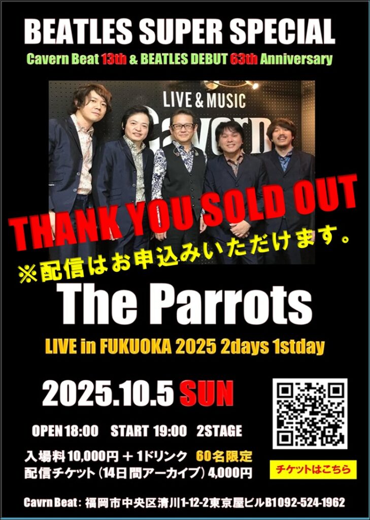 ぜひ福岡の会場に来られなくても生配信にてパロッツの福岡キャバーンビートでの特別なライブをお楽しみいただけましたら幸いです。