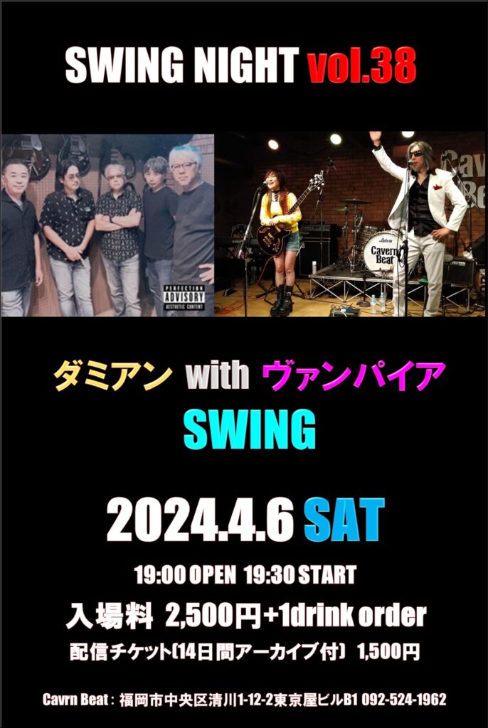 スイングナイトでは、ビートルズとイーグルスの名曲を中心に洋楽カバーをお届けしています。重厚なコーラスと40年以上共に培ってきたメンバーのグルーブをお楽しみください!スイングは佐賀と福岡キャバーンビート(偶数月)で定期ライブを行っています。
