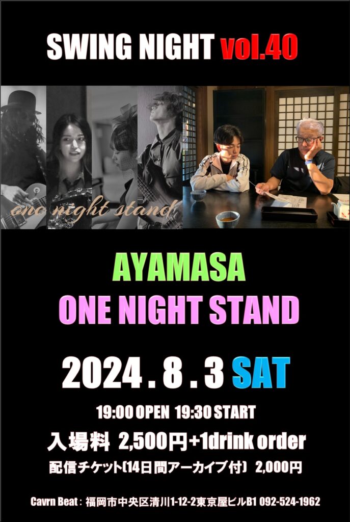 演奏開始 19:30(前後する場合があります。)1stステージ 19:302ndステージ 20:30