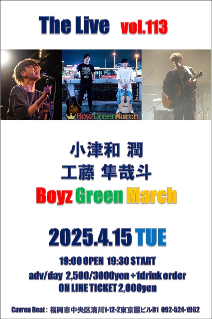 「THE LIVE」はキャバーンビートの若手応援イベントの一つ、「Boyz Green March」がホストとなり主に福岡県内外で活躍中の注目シンガーソングライター、アーティストが出演しています!毎月第3火曜日に開催しています。今回も注目の若手のアーティストが出演しています!