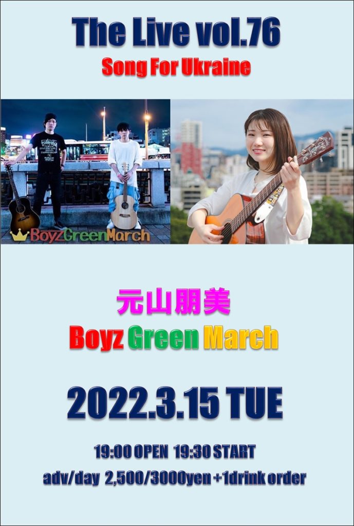 「THE LIVE」はキャバーンビートの若手応援イベントの一つ、「Boyz Green March」がホストとなり主に福岡県内外で活躍中の注目シンガーソングライター、アーティストが出演しています!毎月第3火曜日に開催しています。今回も注目の若手のアーティストが出演しています!