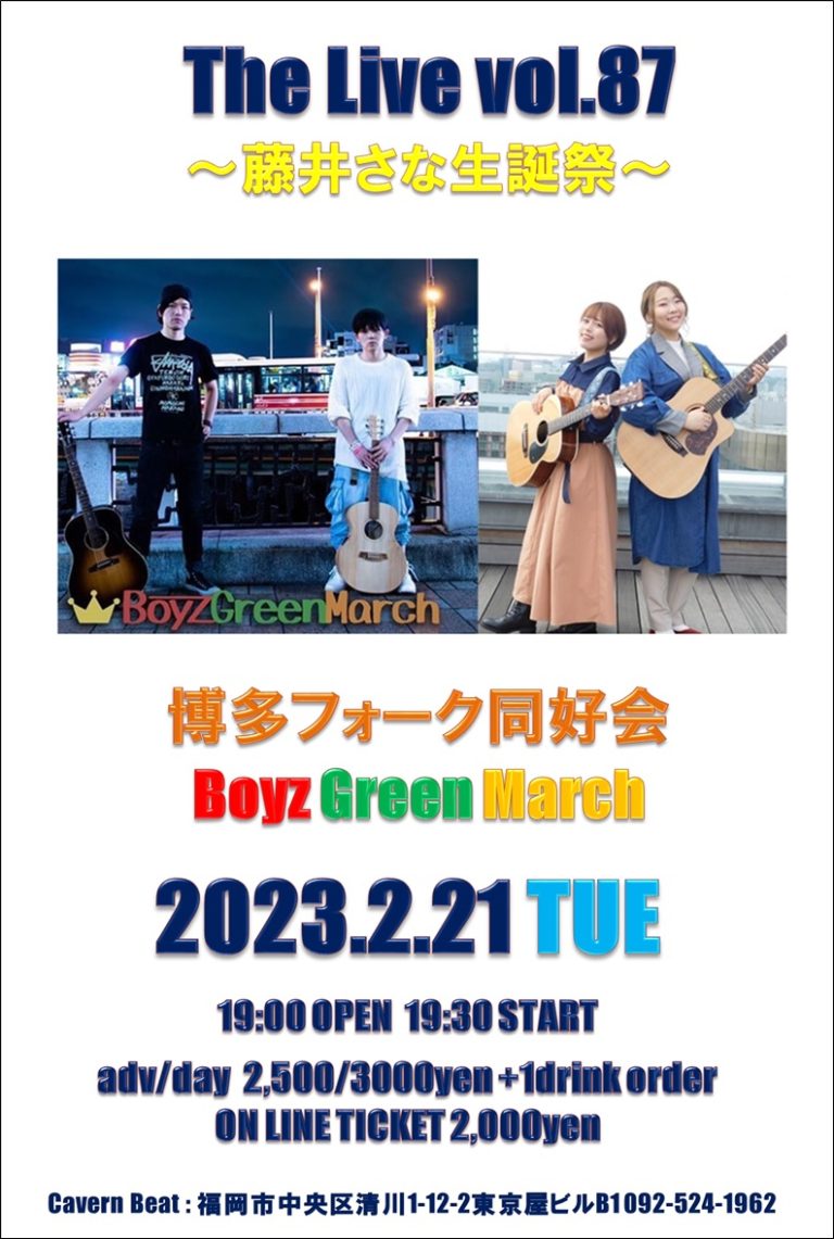 【ライブ生配信】2023年2月THE LIVE vol.87【出演】Boyz Green March , 博多フォーク同好会